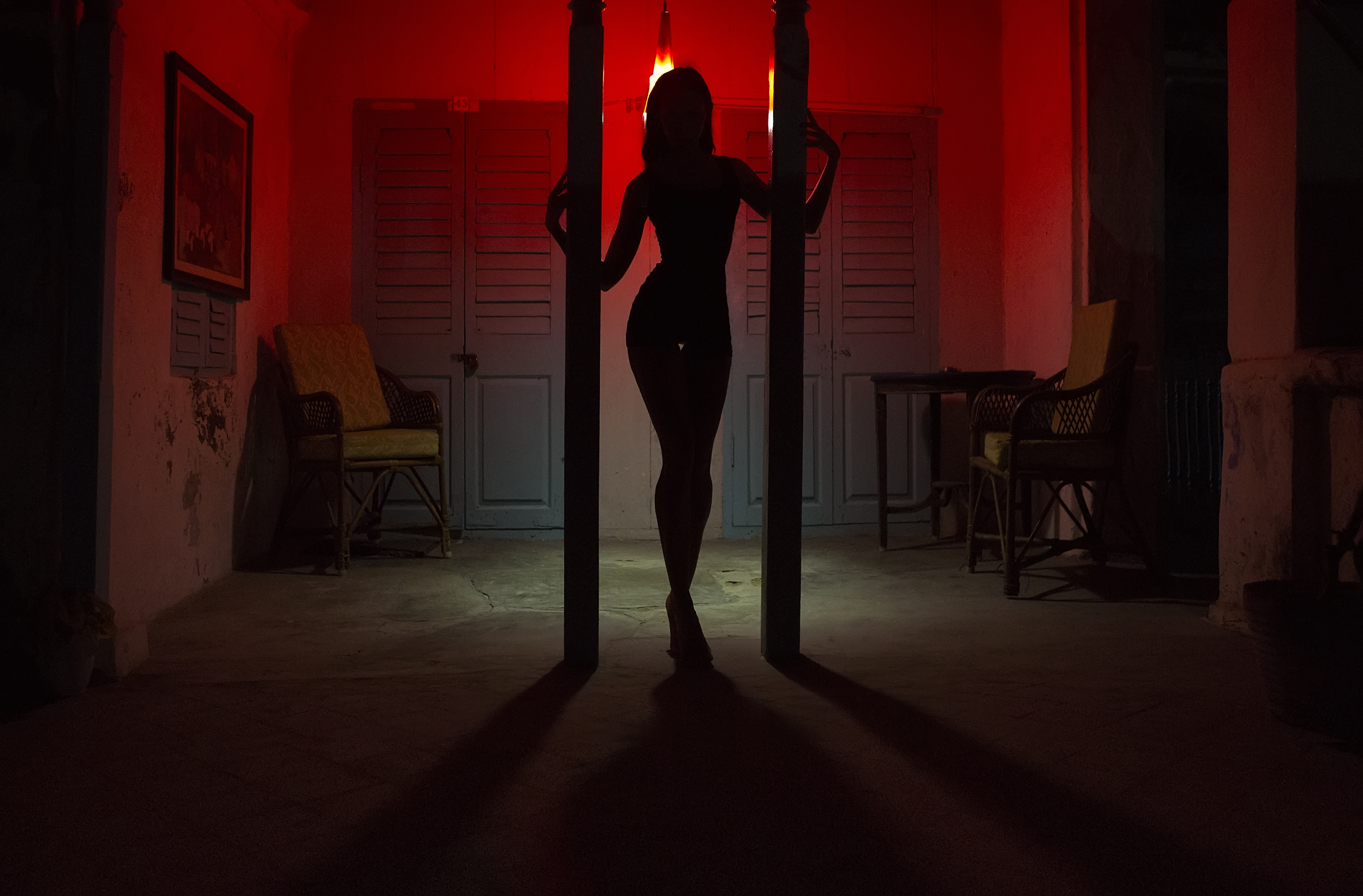 На кадрах видно, как правоохранители заходят в здание по лестнице с красной подсветкой. Внутри их встречают девушки в откровенных нарядах.