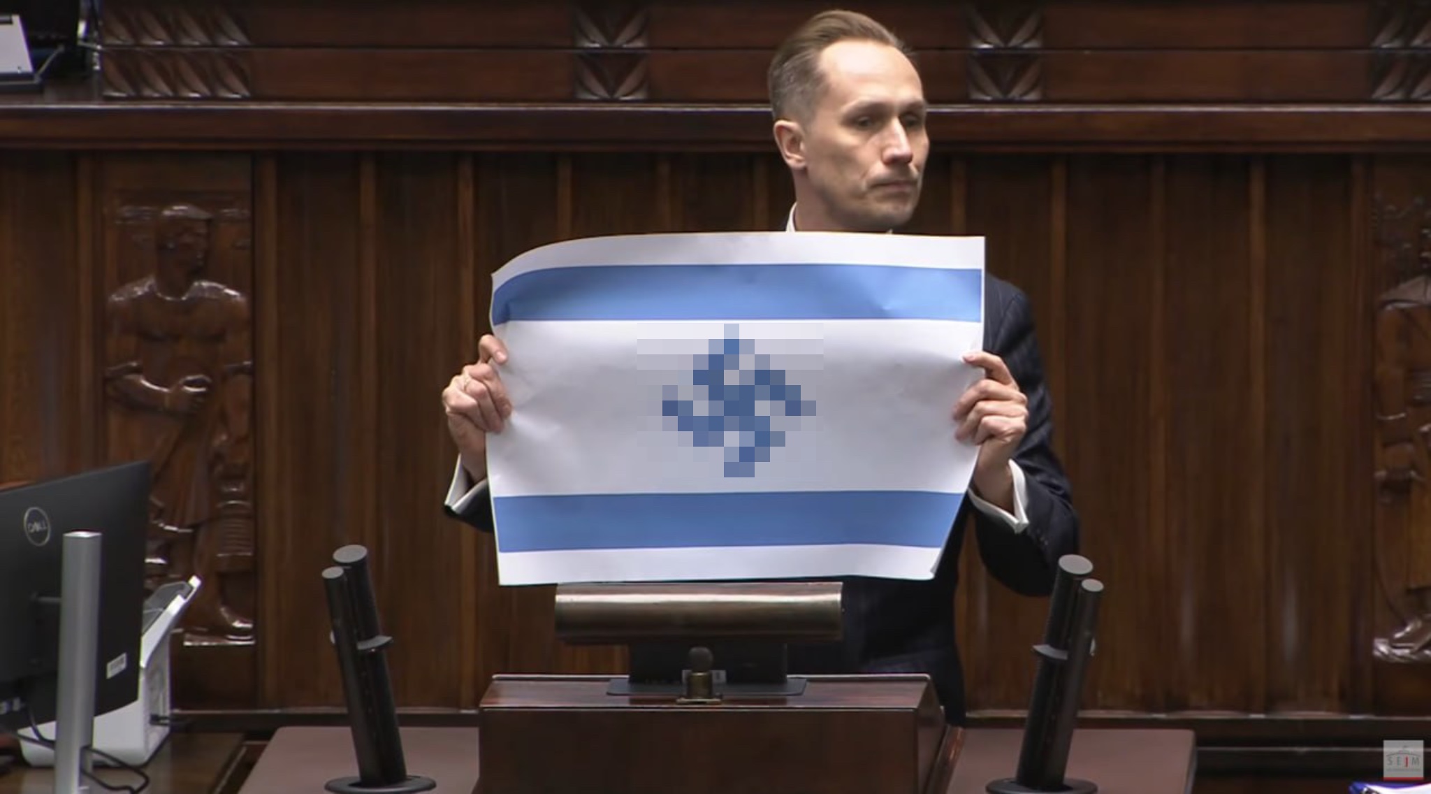 В польском Сейме произошёл резонансный инцидент с участием депутата Конрада Берковича. Представитель ультраправого объединения вышел к трибуне с флагом Израиля, на котором вместо звезды Давида была изображена свастика.