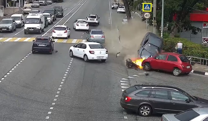 Сочи. Иномарка вылетела на тротуар и