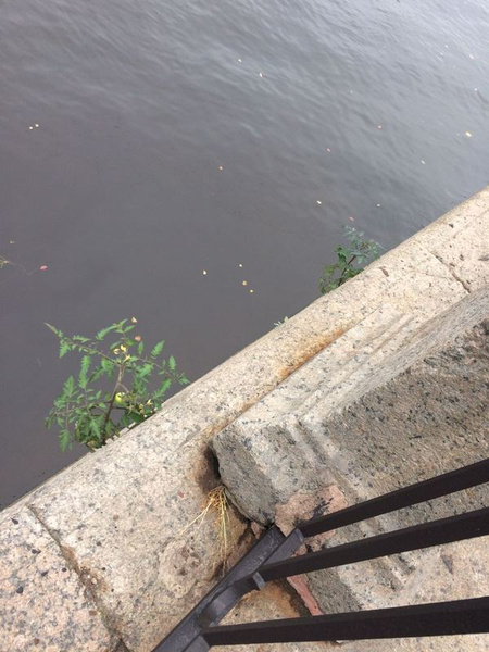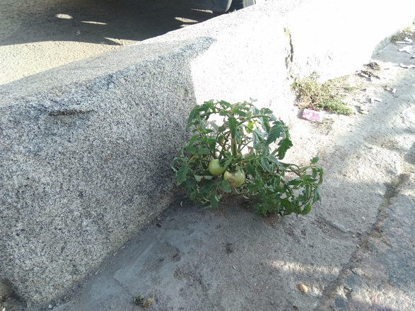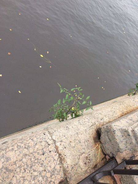 А вот фото, сделанное пару лет назад. Кустик помидора вырос прямо в гранитной набережной у Невы.
