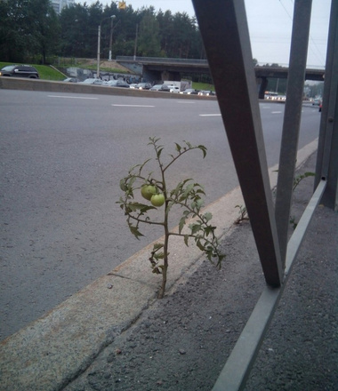 В Петербурге прямо на дороге из асфальта пророс куст с томатами. И не где-то на окраине, а вдоль одной из самых оживленных трасс города. Фотографии с пробивными помидорами (иначе и не скажешь) выложил в сообществе Pikabu пользователь под ником Monaora.