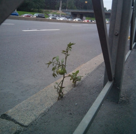 Каждый день человечество отвоевывает себе часть природы: вырубает леса, закатывает поля в асфальт и бетон. Однако матушка-земля так просто не сдается. И вот вам еще одно доказательство: история о помидоре, который смог.