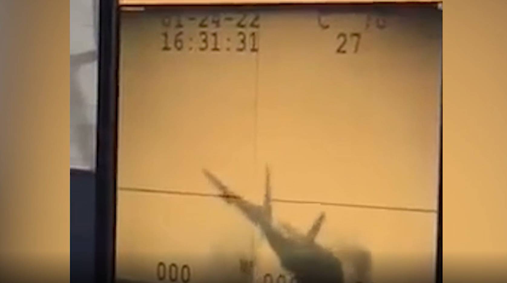 На кадрах видно, что самолёт ударился о палубу корабля задней частью фюзеляжа, а потом его отбросило в сторону. Затем истребитель ударился носом о поверхность и начал скользить. После этого он развернулся и выпал за борт. На видео с другого ракурса можно заметить, насколько сильно после столкновения истребитель охватило огнём.