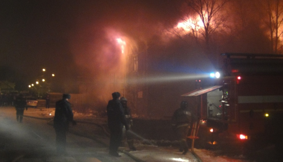 "На 05:44 (3:44 мск) пожар распространился на площади 6600 квадратных метров. Для обогрева людей привлечён автобус и развёрнут пункт временного размещения на базе средней школы № 29", — уточнили в региональном ГУ МЧС РФ.