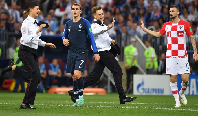 Арт-группа Pussy Riot готовила свою акцию целую неделю. Участникам провокации пришлось приобрести паспорта болельщиков. Они разработали план, чтобы во время финального матча чемпионата мира между сборными Франции и Хорватии пробраться как можно ближе к кромке поля.