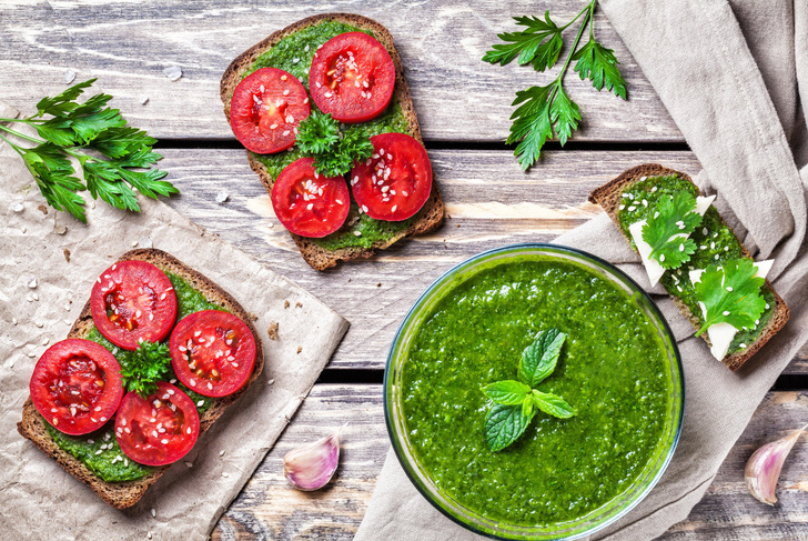Внешне зеленая приправа напоминает итальянский соус песто, но по составу это две совершенно разные заправки.