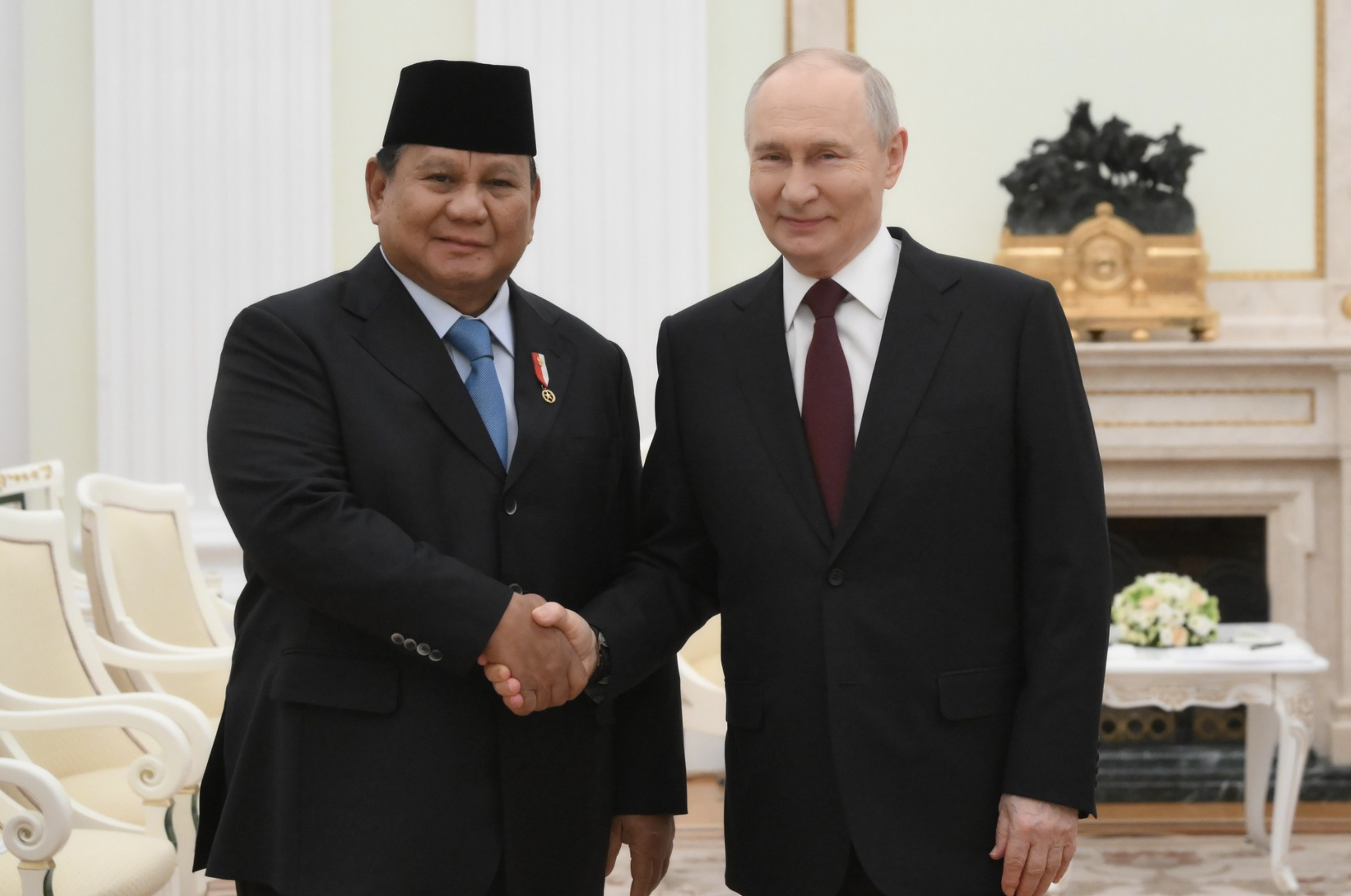 Президент России Владимир Путин проводил своего коллегу из Индонезии Прабово Субианто прямо до машины после состоявшихся переговоров в Кремле. Кадры выхода политиков из здания публикует пресс-служба администрации российского лидера.