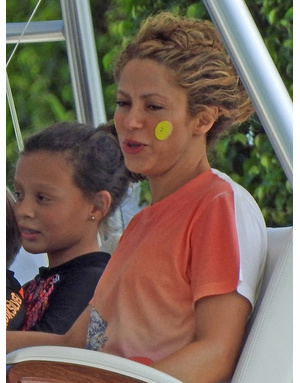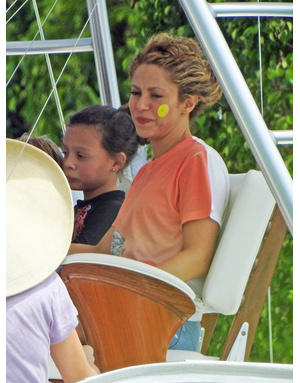 На ее щеках были нарисованны большие желтые круги, прямо как у клоунов. Скорее всего, это она сделала, чтобы развеселить своих сыновей, с которыми каталась на лодках. По всей видимости, 41-летняя звезда решила немного отдохнуть от своего тура «El Dorado» и повеселиться на славу вместе с детьми в Майами.