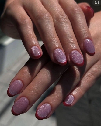 Классический френч всегда смотрится актуально, но в честь 14 февраля предлагаем его немного изменить. Попробуйте сделать более праздничный вариант, где за основу берется нежный розовый лак с эффектом кошачьего глаза