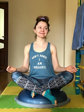 И пока ее дочка гуляет, Валентина времени зря не теряет, а занимается спортом и делает растяжку: