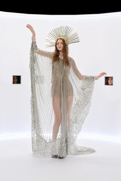 Минувшим вечером Алессандро Микеле представил свою новую кутюрную коллекцию для Valentino, и этот показ стал одним из самых обсуждаемых событий Недели. Причем не только из-за нарядов, но и из-за необычного формата, который выбрал дизайнер. Гости сидели не в привычном зале вокруг подиума, а как бы подсматривали за моделями через небольшие квадратные окошки в стене, как в старинной кайзер-панораме. Это устройство, предшественник кинематографа, где люди рассматривали стереоскопические слайды. У каждого зрителя было определенное место в первом ряду, поэтому ракурсы у всех были разные. Такой крутой high concept заставил по-настоящему вглядываться в детали, не отвлекаясь на соседей или телефон. Получилось очень необычно и свежо.