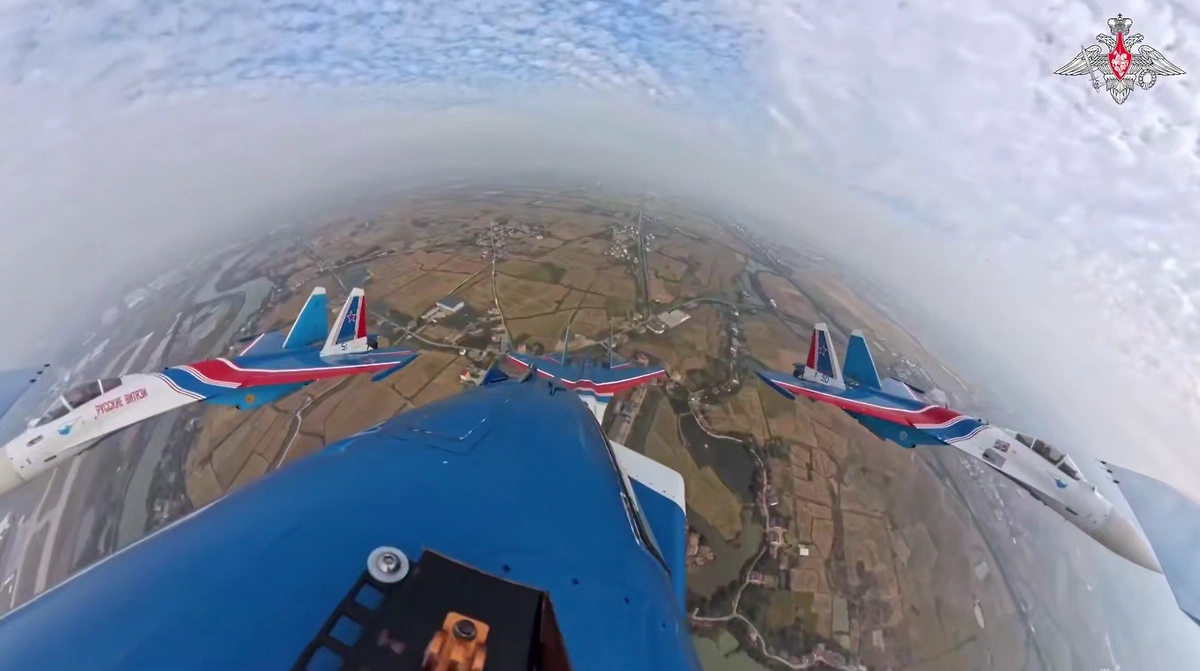 «На Су-35с и Су-30см лётчики показали сверхманёвренные возможности истребителей и выполнили сложные фигуры высшего пилотажа. Среди наиболее эффектных элементов были «зеркало», «колокол», роспуск и проходы на малой высоте и предельно малой скорости», — сказано в тексте.