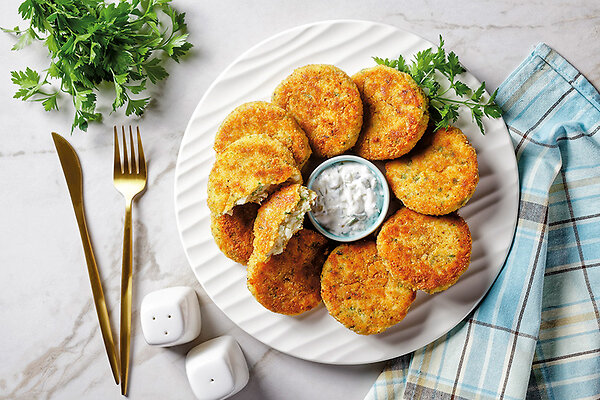 Мокрыми руками сформовать котлетки, обсыпать их мукой, выложить на противень и выпекать в духовке в течение 30 минут при 200 °С.