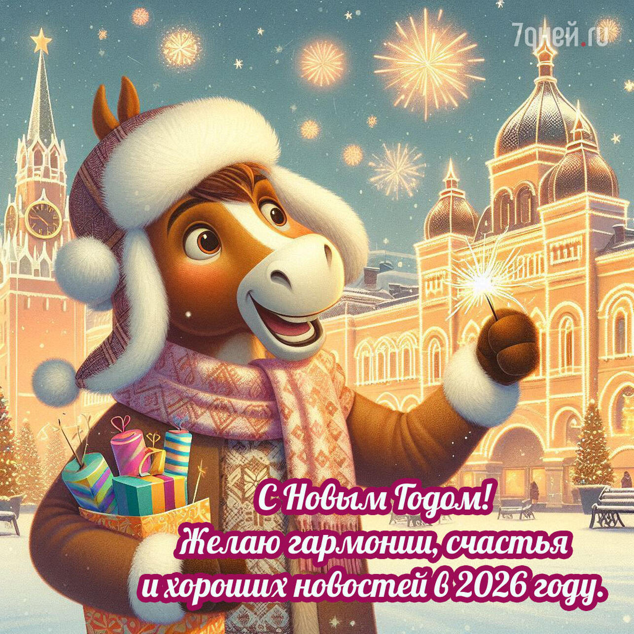 Мы подготовили подборку из 30+ открыток с теплыми, добрыми и универсальными пожеланиями. Их удобно отправлять друзьям, родным, коллегам и всем, кого хочется поздравить с наступающим 2026 годом.