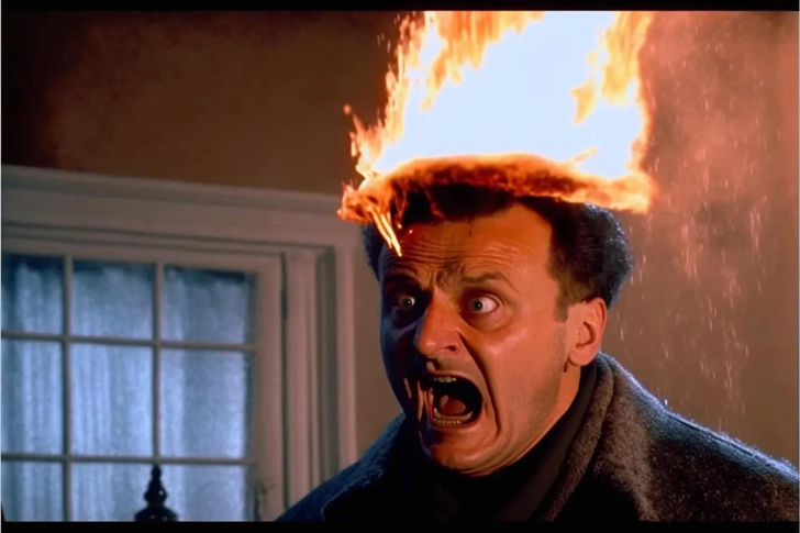Зато бандиты Гарри и Марв мало отличаются от тех, что были в оригинальном фильме. По мнению некоторых интернет-пользователей, они оба отлично вписались в эту обстановку, ведь единственное, что им добавила нейросеть — теплая одежда.
