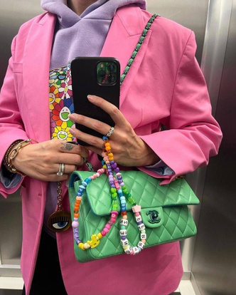 Однако, если вы все же не решаетесь на покупку новой сумки, предлагаем воспользоваться еще одним трендом — классном и популярном последние месяцы способом стилизовать уже имеющуюся любимицу. Оживить весь образ помогут брелоки, подвески и шармы и другие безделушки, которые наверняка есть у каждой модницы. Именно так делала Джейн Биркин — актриса украшала свои аксессуары всем сразу: ленточками, цепочками, бусами, наклейками и значками. И сегодня на сумках героинь стристайла можно встретить как брендовые подвески, так и пушистые игрушки или детские бусы младшей сестры.