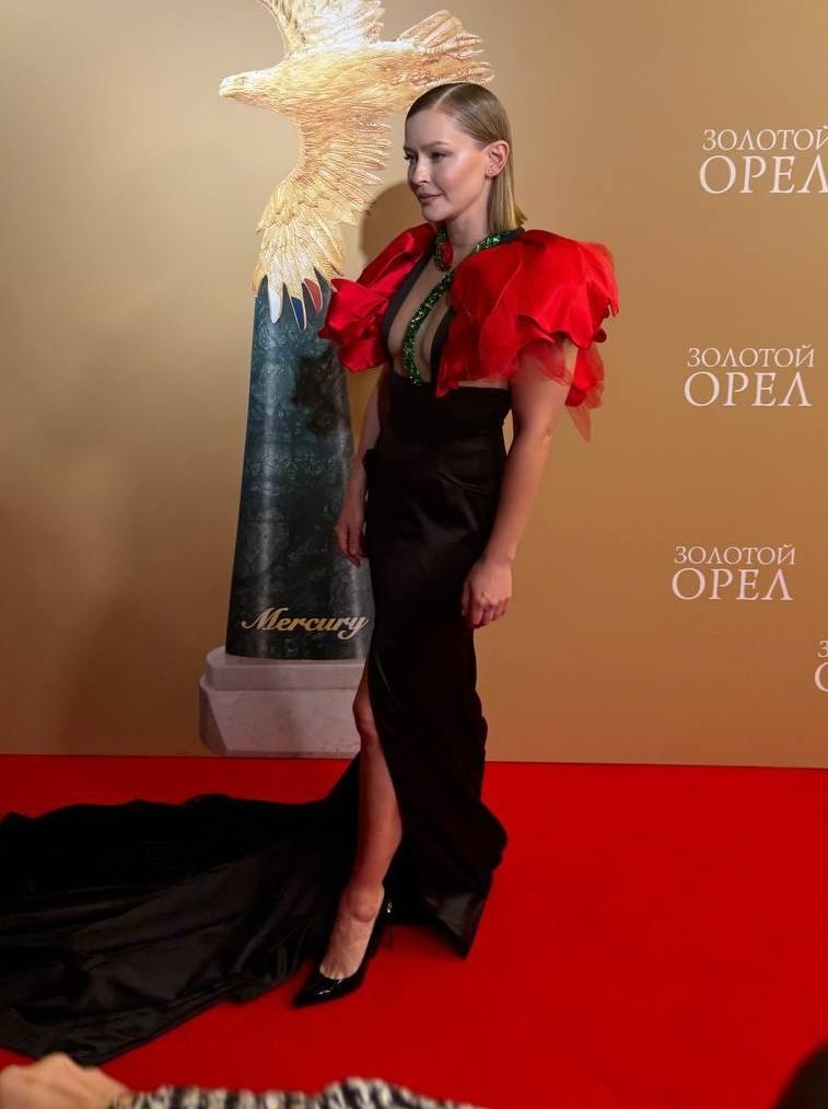 В этим минуты в Москве проходит церемония вручения премии «Золотой орел 2026». , а пока все внимание на самую яркую гостью вечера. Юлия Пересильд появилась перед журналистами в очень непривычном для себя образе. Платье с глубоким декольте, узкой юбкой и яркими рукавами, напоминающими лепестки розы, украшала сверкающая змея. Или по задумке дизайнера это стебель цветка? Мы все же ставим на змею — в таком роковом образе может быть только она.