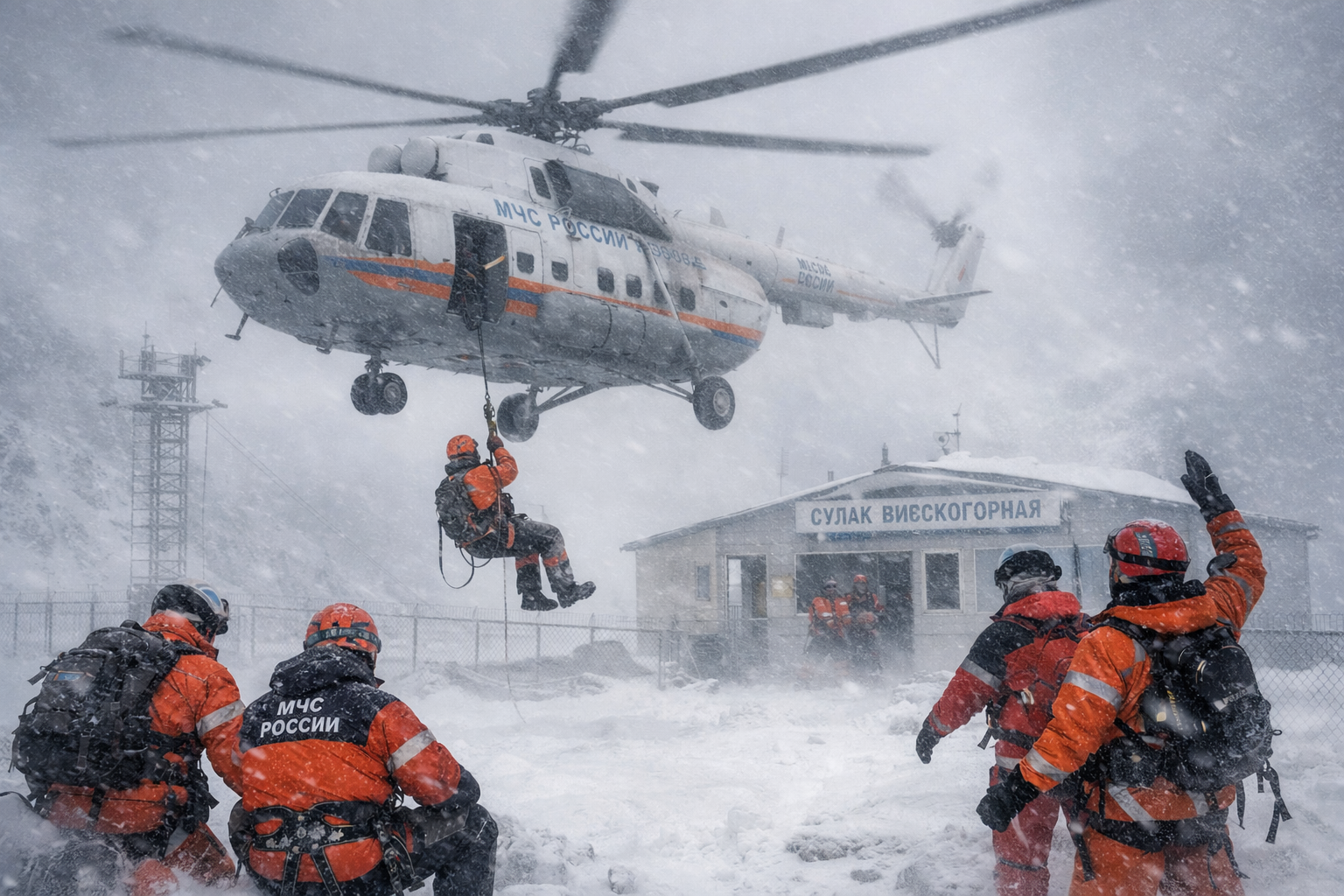 Вертолет продолжает кружить в районе станции, чтобы контролировать ситуацию и убедиться, что сотрудники живы. О сроках эвакуации пока не сообщается. Решение будет зависеть от погодных условий.
