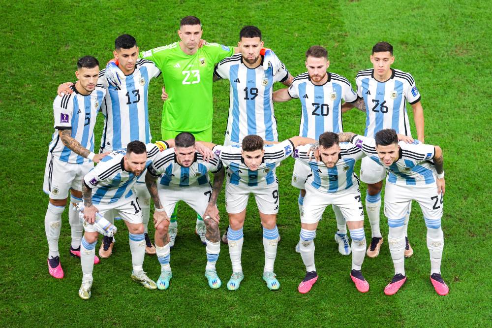 Аргентина: Э. Мартинес, Молина, Ромеро, Отаменди, Акунья, Ди Мария, Де Пауль, Э. Фернандес, Мак Аллистер, Месси, Альварес. Франция: Льорис, Юпамекано, Варан, Т. Эрнандес, Кунде, Тчуамени, Рабьо, Гризманн, Жиру, Дембеле, Мбаппе.