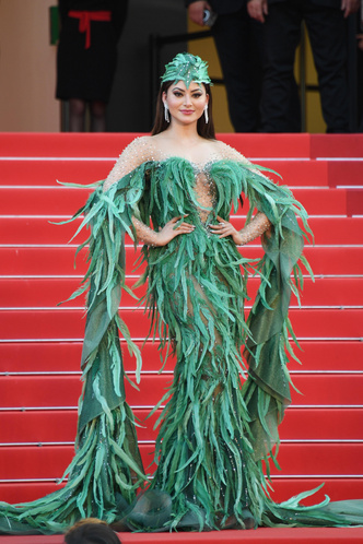 «Это платье того же бренда, что я надевала в прошлом году на закрытие кинофестиваля. Его создал ливанский кутюрный дизайнер. Мне хотелось чего-то необычного, чтобы уйти от привычных платьев принцессы, в которых я хожу на фестиваль уже второй десяток лет. Искала, что отражало бы меня, и вот нашла. Мое платье даже попало в иностранные журналы как лучшее», — .