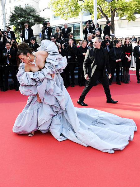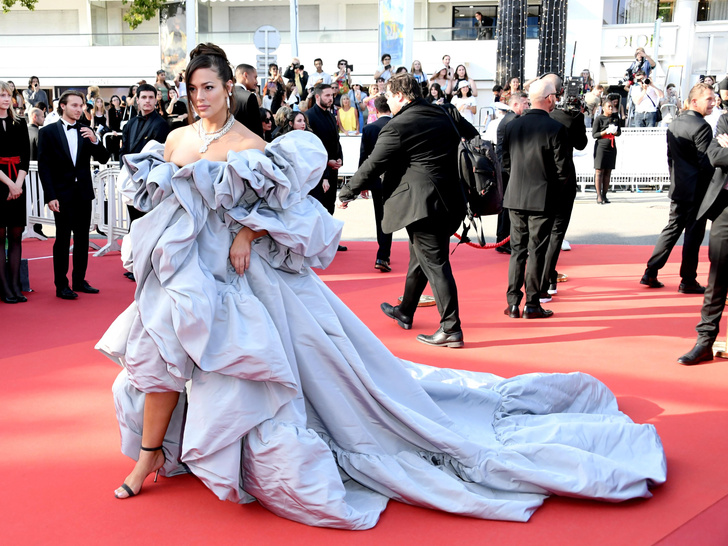 На премьере в Каннах модель решила обойтись без мини, обтягивающих силуэтов и облачилась в объемное платье Dolce&Gabbana — Эшли призналась, что образ напоминает ей облачко.