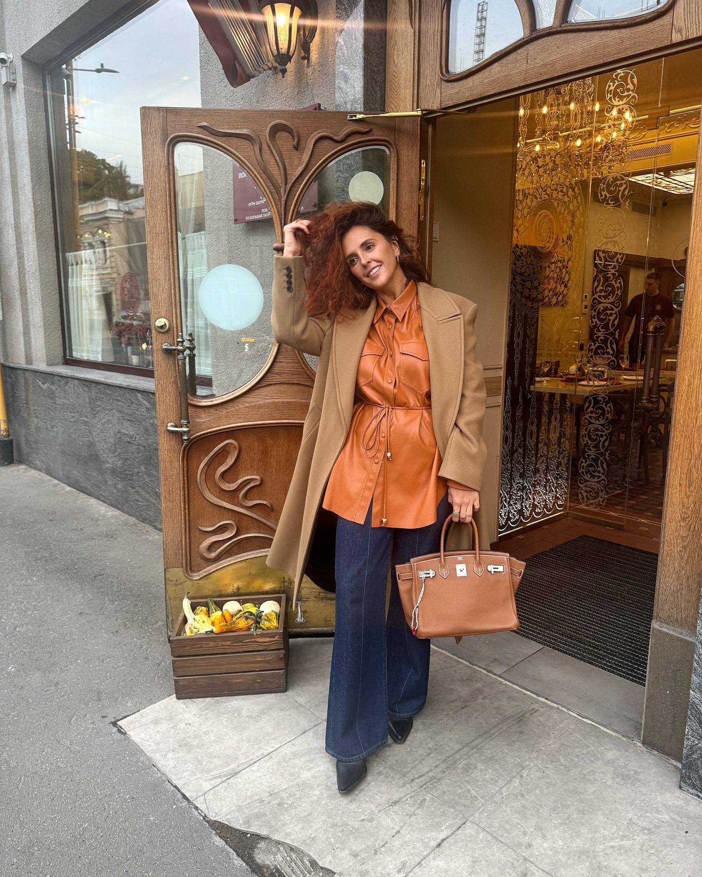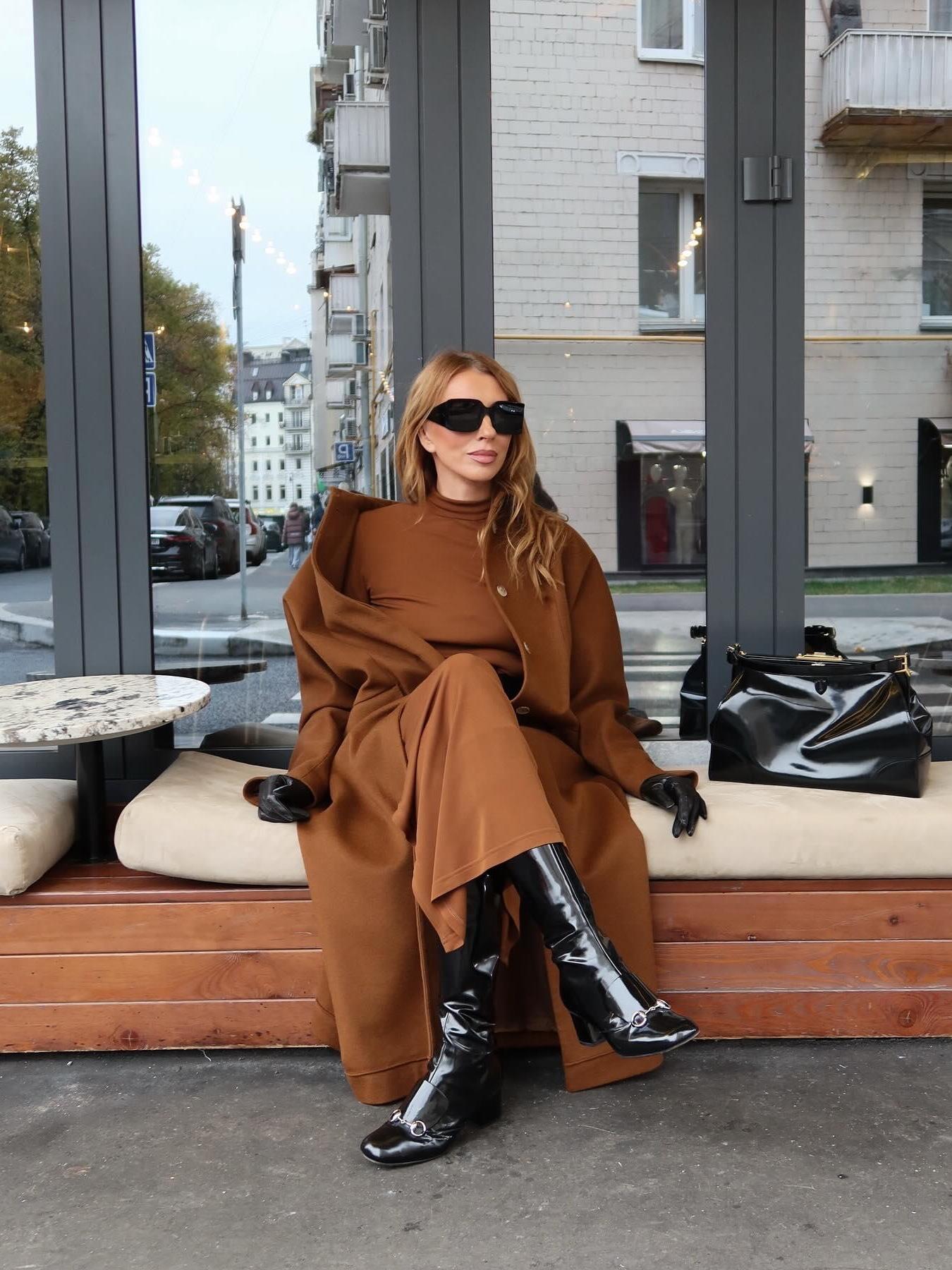 Светлана Степанковская и Мария Шумакова этой осенью делают ставку на актуальные оттенки: песочный, карамельный, терракотовый, светло-серый и темно-синий. А вот Светлану Бондарчук и Татьяну Брухунову больше тянет на шоколадный. Причем разный. Супруга Евгения Петросяна с улыбкой носит укороченный бомбер из замши в кофейном оттенке с широкими джинсами и фактурными беретом, а вот светской львице по душе элегантная классика в оттенке корицы в миксе с черной лаковой кожей. И несмотря на то что глянца в этом наряде довольно много, выглядит он все равно гармонично и очень изысканно.