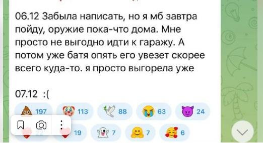 На следующий день она называет дату Х, говорит, что осталось совсем немного времени до ее миссии. Накануне вечером оставляет пост про оружие, а утром, 7 декабря, незадолго до стрельбы, грустный смайлик.