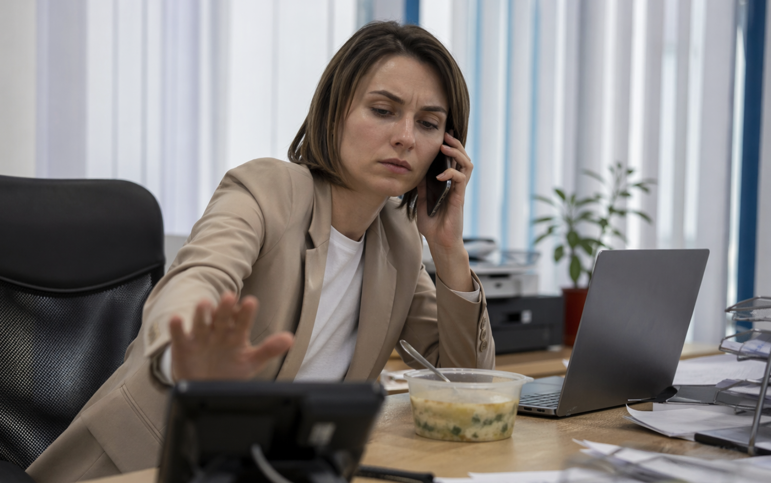 По данным SuperJob, каждый пятый офисный сотрудник вообще не успевает поесть в обеденный перерыв, продолжая работать. Но сильнее людей, похоже, беспокоят переработки и общее выгорание. По другому исследованию SuperJob, 77% офисных сотрудников в России сталкиваются с переработками: 31% — регулярно, ещё 46% — периодически. А hh.ru ранее сообщал, что с симптомами выгорания сталкивались 80% работников, причём половина постоянно чувствует усталость и раздражительность.