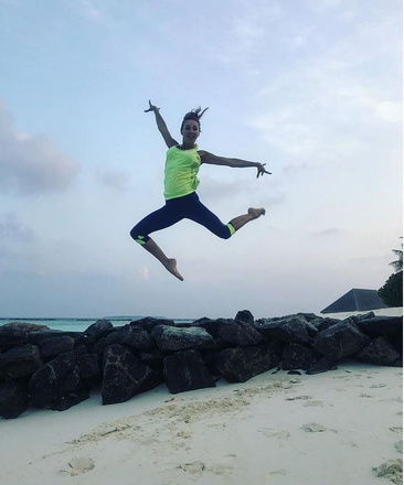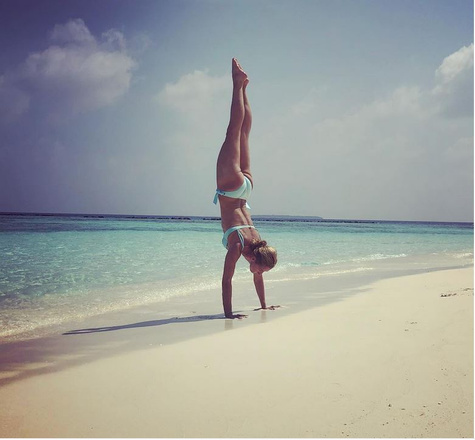 Каждую неделю фигуристка делится в социальных сетях видео и фото с тренировок и доказывает, что мама двоих детей способна на многое. Стоя на одной ноге, Навка может изящно нагнуться вперед и зубами поднять с пола лист бумаги, сесть на шпагат, сделать идеальный мостик, высоко подпрыгнуть, вверх тормашками встать на пляже, и это все в 43 года!