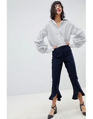 Если обычные брюки вам немного поднадоели, исправить ситуацию поможет маленькая деталь. Например, разрезы на штанинах. Девушкам поскромнее рекомендуем начать с небольших вырезов длиной 2−3 см