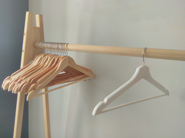 Если же за окном снег или дождь, одежда гостей, соответственно, промокла, то лучше разместить ее в открытом доступе. Однако не у всех есть открытые штанги для размещения одежды, тогда вам на помощь придет напольная вешалка, которую можно разместить абсолютно в любой комнате вашего дома. Такая напольная штанга не только компактна, но легко разбирается и собирается, а также может использоваться по случаю или на постоянной основе. Не стоит забывать про плечики, если одежда мокрая, то с помощью этого простого аксессуара, она быстрее просохнет. Пальто, изделия из кожи и меха необходимо постоянно размещать на плечиках или вешалках, чтобы избежать заломов и деформации. Если же есть риск, что талая вода с одежды может накапать на пол, то разместите лотки для обуви прямо под вешало для верхней одежды.