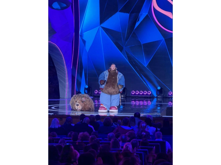 Следом на сцену вышел самый загадочный артист этого сезона — Жираф. Если первую половину проекта жюри думали, что в костюме скрывается мужчина, то во вторую решили — все-таки женщина.