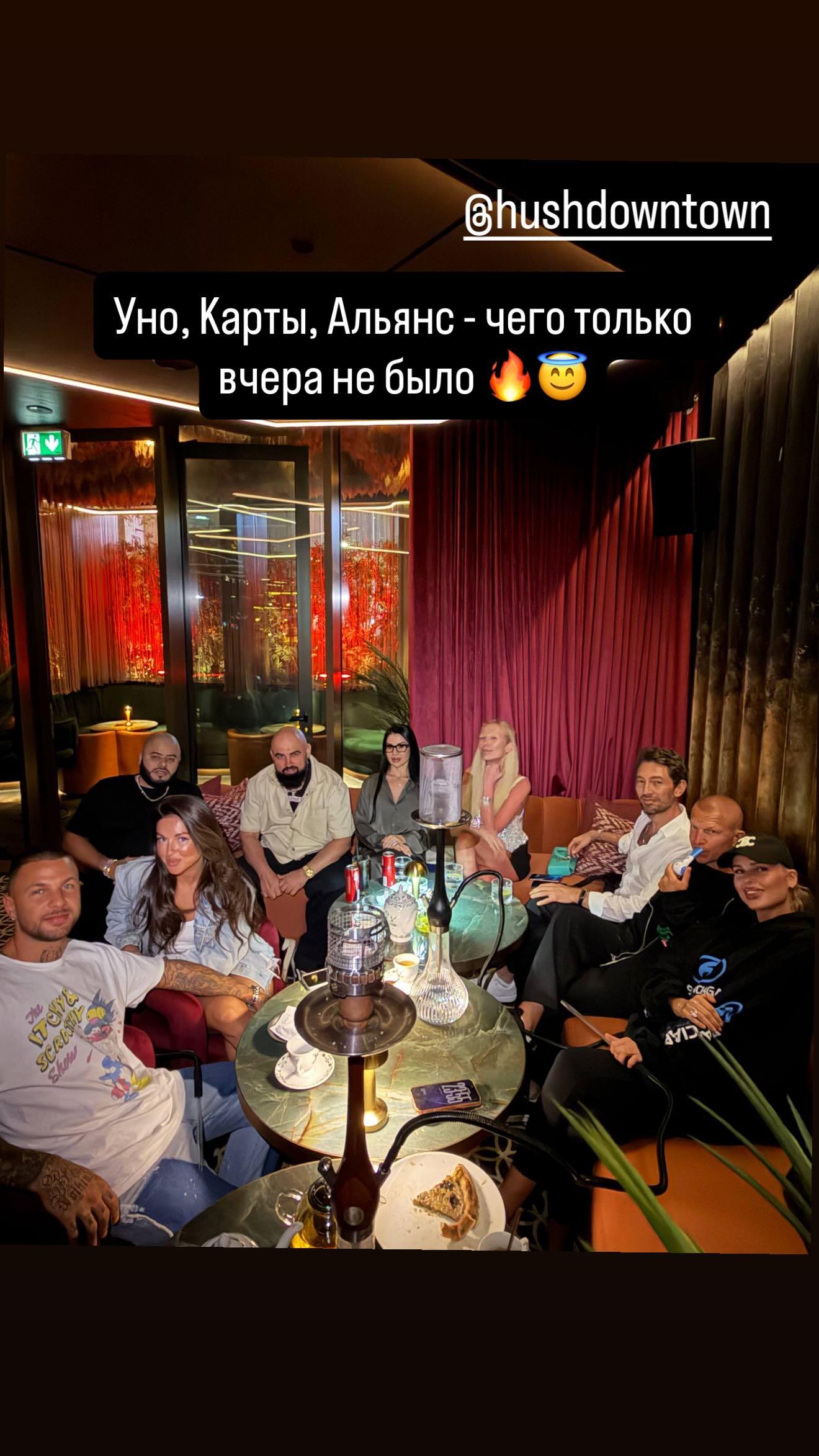 А теперь Нюша вовсе перестала скрывать своего возлюбленного. Сейчас пара находится в Дубае, и недавно в личном блоге основатель Black Star Пашу опубликовал фотографию с дружеских посиделок. На снимке можно заметить Нюшу и Влада.
