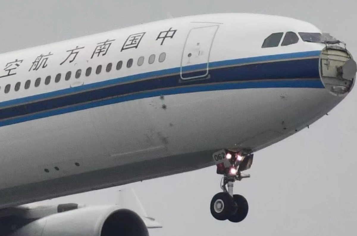 Пассажирский самолёт Airbus A330-343 авиакомпании China Southern Airlines продемонстрировал в небе мастерство пилотажа после столкновения со стаей птиц. Лайнер взлетел из аэропорта Шанхай Хунцяо, после чего был сразу «атакован» пернатыми. Удар оказался настолько мощным, что прямо в воздухе разрушился обтекатель РЛС на носу. Об инциденте The Aviation Herald.