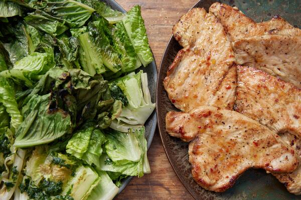 Стейк из индейки в персиковой глазури с гриль-салатом от Александра Бельковича