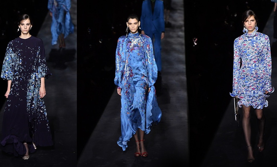 Осенне-зимнюю коллекцию Givenchy можно смело разделить на два смысловых блока: строгий офисный и романтичный вечерний. Первые выходы моделей на подиум – торжество классических смокингов, сшитых в лучших традициях мужского тейлоринга с добавлением ноты 80-х, и графичных черно-белых сочетаний. Для вечерних выходов Уэйт Келлер подготовила более воздушные варианты, которые украсила россыпью цветов и оборками, напоминавшими цветочные бутоны.