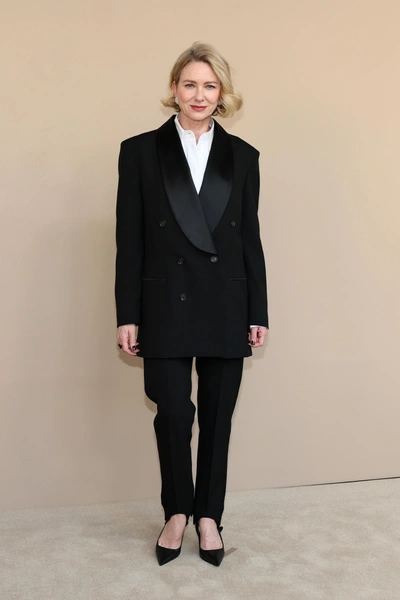 А вот дочери Брунелло Камилла и Каролина сделали ставку на вневременную классику. Первая надела черные широкие брюки, атласный топ и белых жакет, а вторая — струящееся платье-комбинацию с провокационным разрезом спереди и кожаную косуху. Поддержала эту идею и Наоми Уоттс. Актриса позировала на фотоколле в безупречном, строгом и лаконичном женском смокинге, который дополнила незавязанной бабочкой, лодочками и серьгами с камнями.