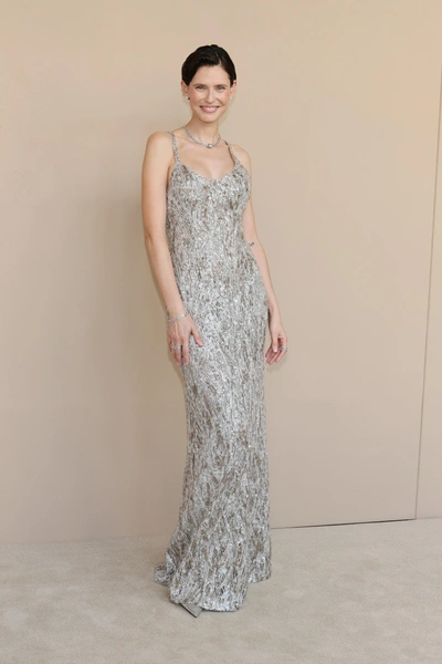 Например, Кэти Холмс выбрала усыпанную пайетками юбку-макси в темно-сером оттенке и сочетала ее с белой сорочкой, наполовину расстегнутой и надетой лишь на одно плечо. А Бьянка Балки, которая, судя по улыбке и эффектной стрижке, полностью оправилась после тяжелой болезни, сияла с ног до головы. Модель появилась в блестящем платье на тонких бретелах, полностью расшитом стразами и бусинами, а многочисленные бриллиантовые украшения сделали ее наряд еще более ослепительным. Кстати, похожая модель была и на Хелена Кристенсен, но она предпочла более светлый оттенок и завершила образ накинутым на плечи молочным блейзером.