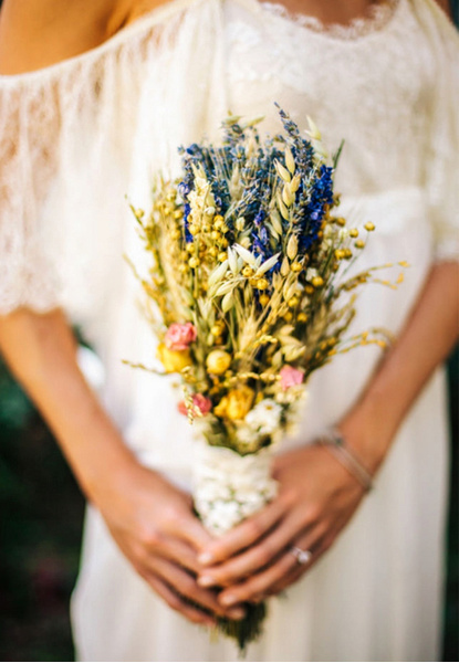 Думаем, никто не будет спорить, что важным аксессуаром невесты является букет. Вместо классических белых роз и лилий в моду вошли пионы и различные редкие цветы, например, плоды эвкалипта или каменная роза. На пике популярности продолжает оставаться использование полевых цветов в своих композициях.