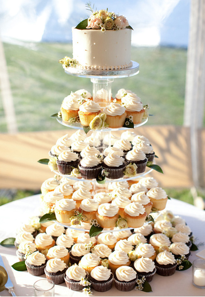Кстати, многие пары предпочитают именно такой десерт, ведь он выглядит весьма необычно и молодоженам не придется тратить время на нарезание лакомства. К тому же отдельными пирожными (капкейками, макарунами) очень удобно угощать гостей.