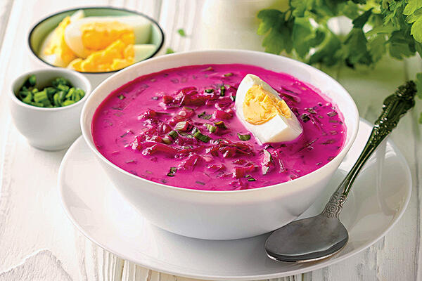 Все ингредиенты сложить в отвар со свеклой и дать настояться пару часов. Добавить в свекольник раздавленные зубчики чеснока, хрен, горчицу и сахар, посолить, поперчить и перемешать (если суп получился слишком густой, добавить холодной кипяченой воды).