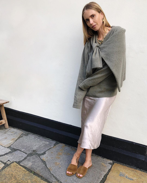 Суть микротренда заключается в том, чтобы создать непринужденную многослойность вокруг шеи и области груди — не очень опрятную, свободную, но при этом в рамках эстетики old money. Вспомните, как модели вышагивают в двух свитерах — один поверх другого, да еще и с шарфом на плечах. Ну и последний козырь: мы никогда не сможем разлюбить свитера с запахом Celine времен Фиби Файло.