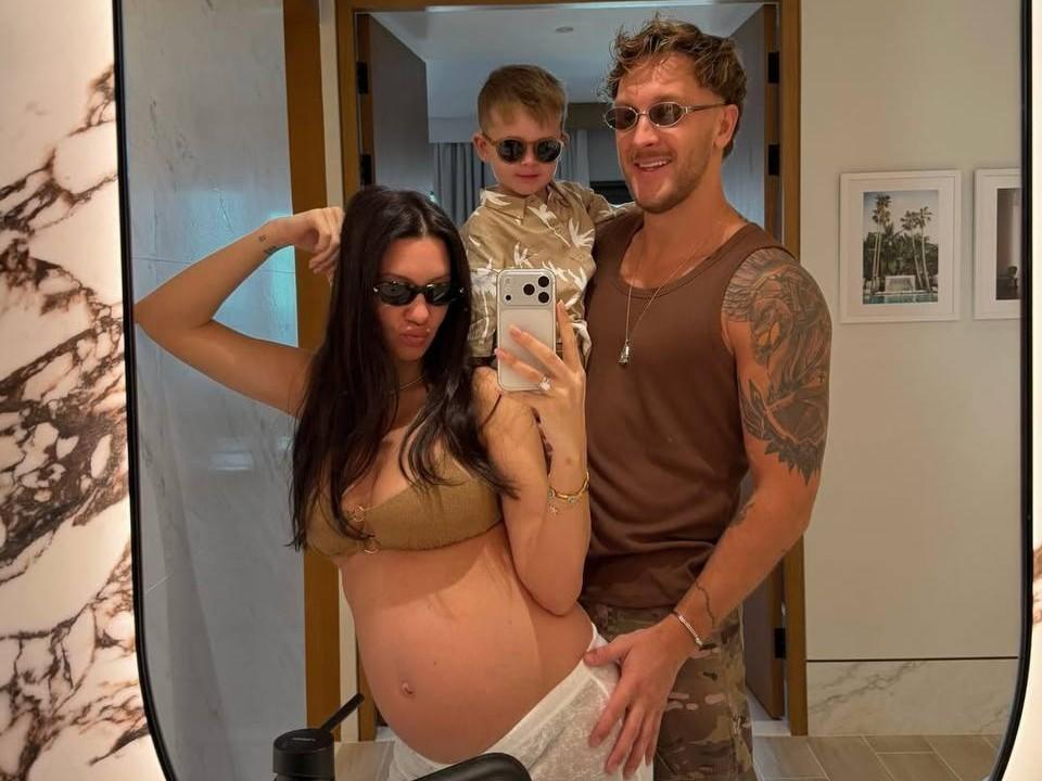 На фотографиях отчетливо видно округлившийся живот Марии, а рядом с будущими родителями — их первенец Иван-Лионель, родившийся 3 марта 2023 года.