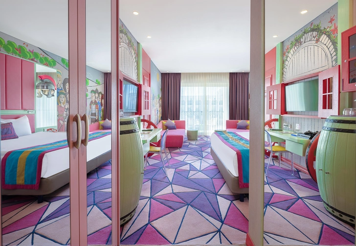 Справедливости ради, вся инфраструктура парка развлечений спроектирована таким образом, чтобы сделать отдых максимально комфортным для взрослых и детей. А это значит, что и отели, которых находятся на территории The Land of Legends созданы с возможностью максимального погружения в мир сказок и мультфильмов. Они предлагают гостям выбрать ту часть волшебной истории, которую они хотят пережить за счет деталей интерьера, развлекательных активностей, особенностей кухни и даже мультяшных героев, которые могут навестись вас на завтраке.