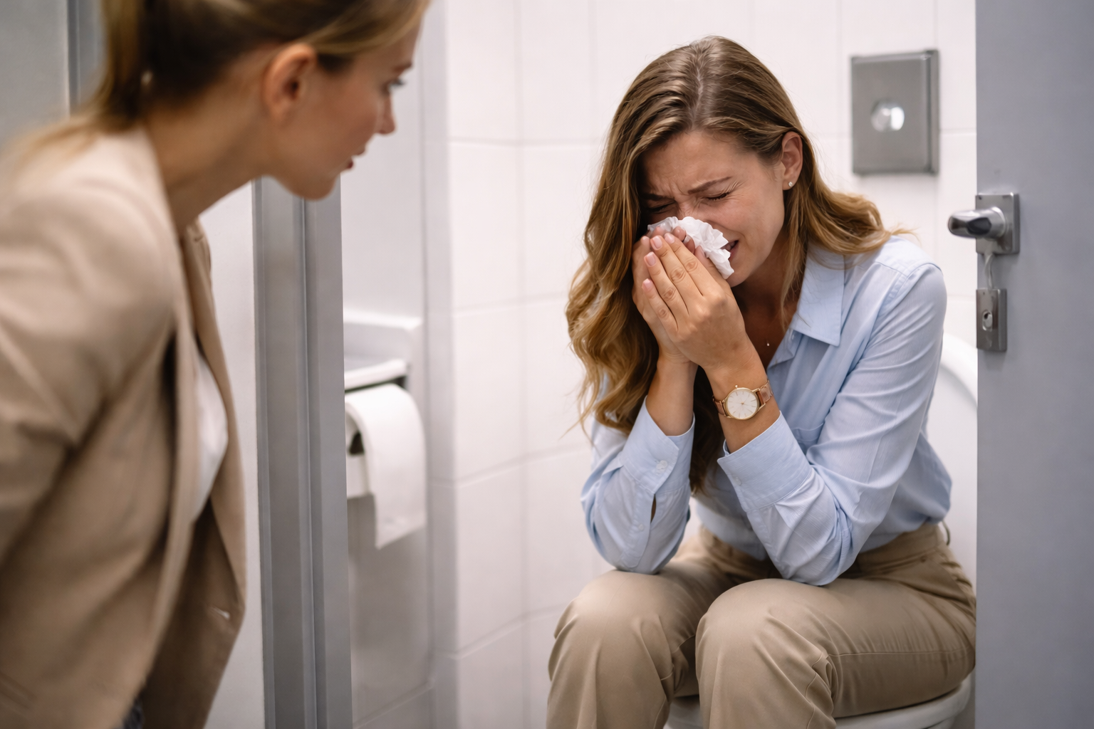 Рабочий коллектив — это не только профессиональные задачи, но и человеческие отношения, которые порой ставят нас в неловкое положение. Особенно остро встаёт вопрос, когда вы случайно застаёте сослуживца в туалете или подсобке в слезах: хочется помочь, но страшно сделать хуже. Психолог Анастасия Лысакова раскрыла Life.ru простые, но важные правила поведения в такой ситуации и объяснила, почему не стоит сразу бежать докладывать руководству.