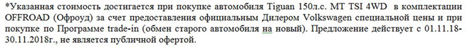 Купить Volkswagen Tiguan OFFROAD предлагают по стартовой цене от 1 699 000 рублей* - в такую сумму обойдется авто с бензиновым 150-сильным мотором объемом 1,4 литра и механической шестиступенчатой коробкой передач. В нем сочетаются практичность, безопасность и неординарный внешний вид, что завоевывает сердца даже самых взыскательных покупателей.