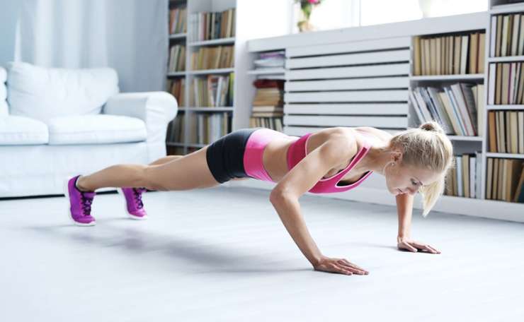 Встаем в планку. Руки держим прямыми, а ладони размещаем на уровне плеч. Живот держим в напряжении, чтобы укрепить мышцы пресса. Выдыхаем и сгибаем руки в локтях по очереди. Вдыхаем и возвращаемся в исходную позицию. Наш эксперт рекомендует прислушиваться к себе и если слишком сложно держать ноги прямыми все время, можно встать на колени.