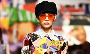 Из 70-х дизайнер также позаимствовала цветочные принты и вышивки, летящие макси-силуэты, бахрому и почти мужские костюмы. Что касается аксессуаров, ключевыми акцентами выступили черные кепи и гипертрофированные очки с цветными линзами.