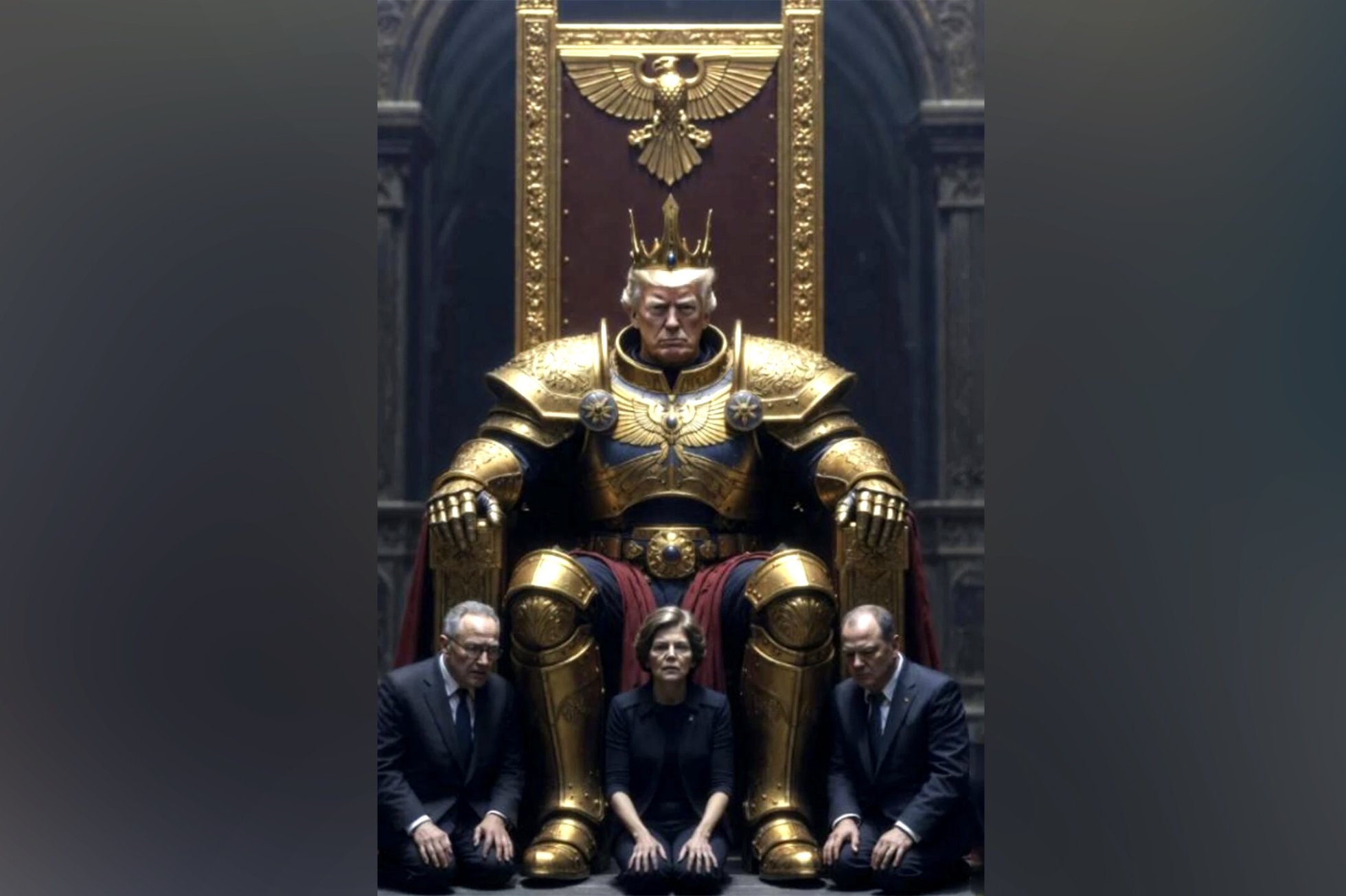 Трамп опубликовал фото на троне в золотых доспехах и с павшими ниц противниками