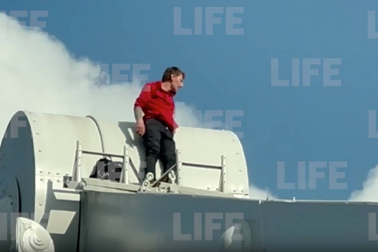 Судя по видео, мужчина поднялся на самую высокую точку опоры моста. На месте событий находятся катера, за действом наблюдает толпа очевидцев. Подробности выясняются.
